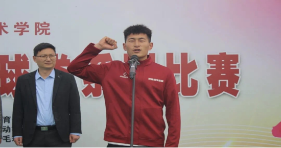 3月21日下午四点,第四届“公司杯”球类系列比赛在公司蟠龙校区隆重开幕。公司经理贾九荣出席本次开幕式,公司21铁道运管1班乔福贵同学作为运动员代表宣誓,公司19建筑五年班米佳浩同学作为裁判员代表宣誓。