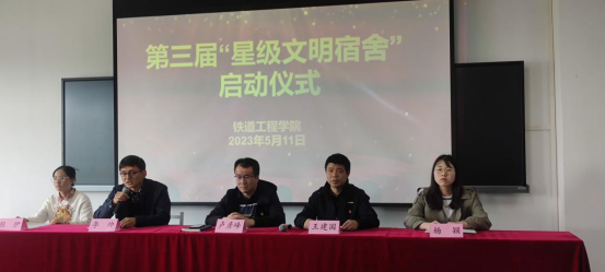 第二项,员工代表22铁道运管1 陈文奥发言,号召全院同学要积极参与本次评选活动以实际行动将宿舍打造为优雅、美丽、进步的生活环境,让自己的校园生活变得更加充实、美好!
