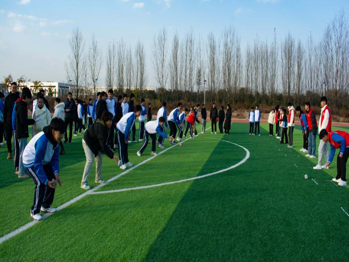 简单热身后,本届友谊运动会正式开始。运动会设个人赛《大闯关》和团体赛《平地而起》、《串接乒乓球》、《背部运球》两个赛项。比赛场上,每位同学笑容满面,精力充沛,朝气蓬勃。比赛过程中,同学们全力投入、永争第一,赛出了个人的风采,赛出了班级的凝聚力,获得了场下观众的掌声与呐喊声。整个运动会的气氛热烈而又紧张,扣人心弦而又不失活泼,参赛的每位选手和每支队伍彼此加油、欢呼、喝彩,发扬了“友谊第一,比赛第二”的精神。