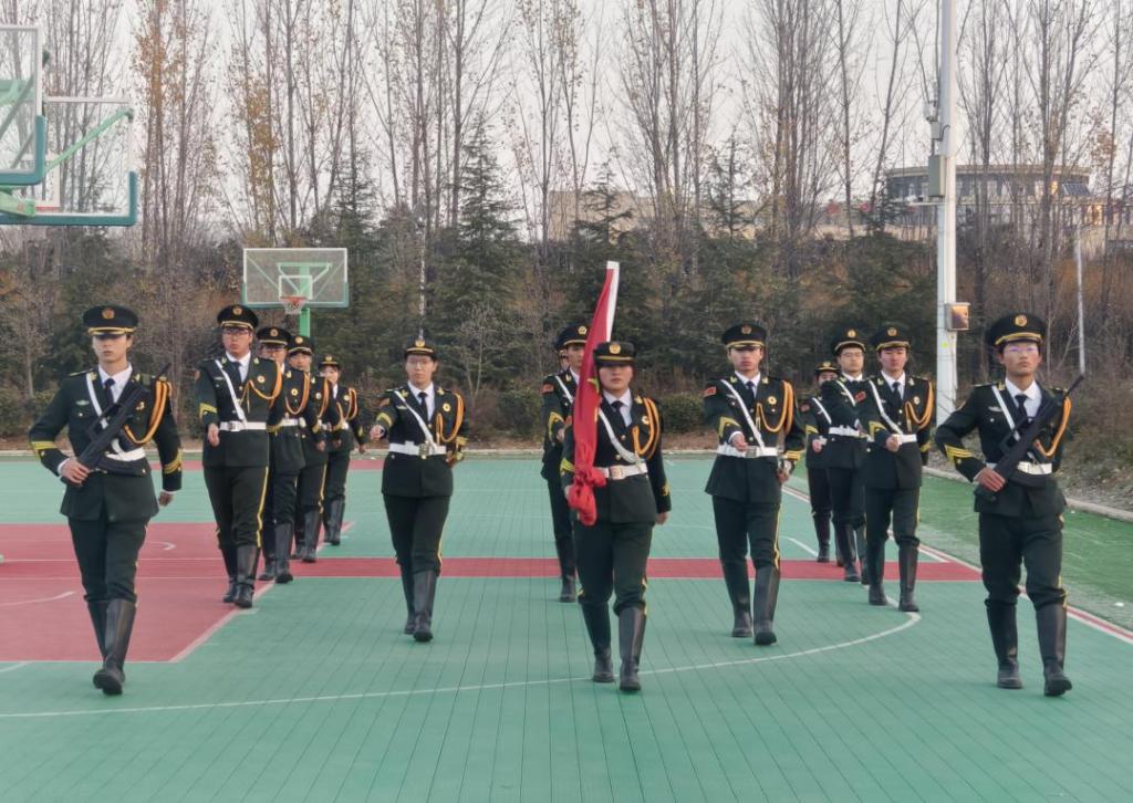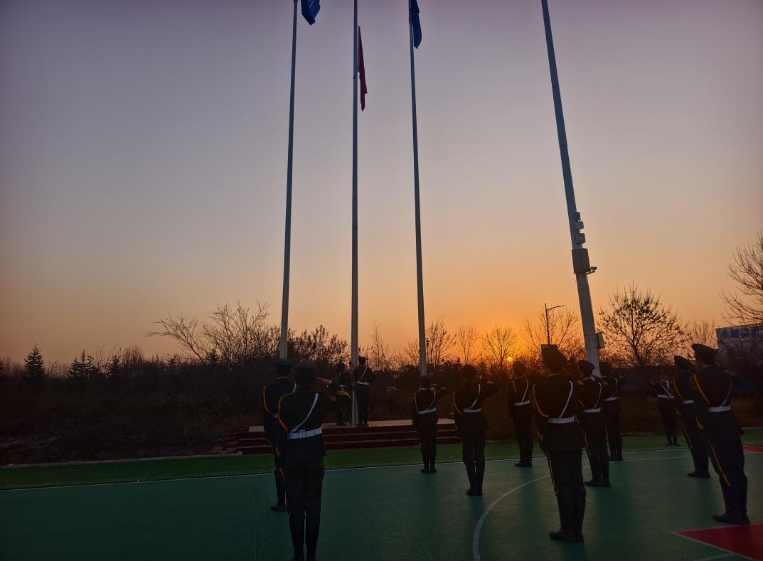 午7时50分,伴随着庄严的乐曲,国旗护卫队踏着铿锵有力的步伐,将五星红旗庄严护送入场。当激昂的国歌奏响,鲜艳的国旗迎着晨光冉冉升起,全体师生肃立注目,齐声高唱国歌,以昂扬的姿态表达对祖国的无限热爱与崇高敬意。