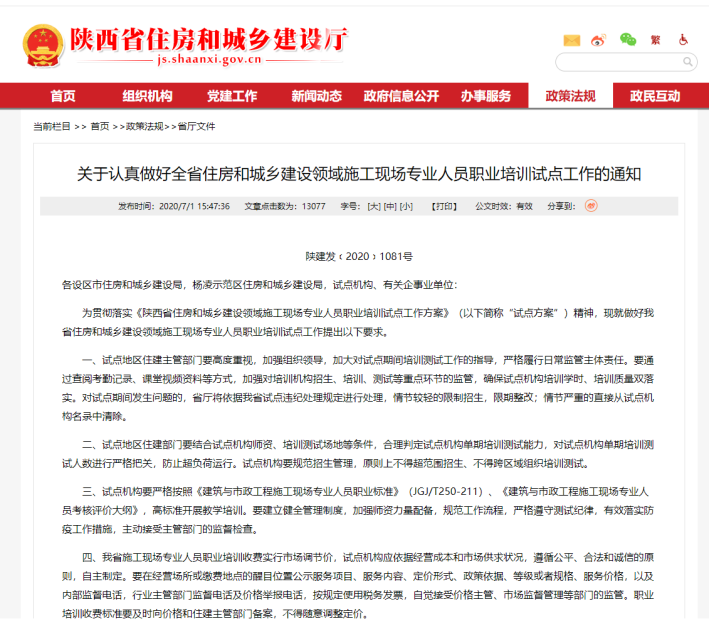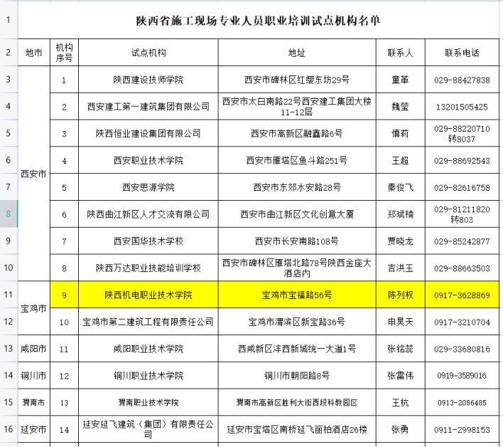 2.10陕西省住房和城乡建设领域施工现场专业人员职业培训试点机构