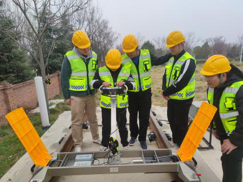 1.CPⅢ控制网布设:CPⅢ控制网(轨道控制网)结合铁道综合实训基地,主要使用徕卡TS16全站仪、天宝电子水准仪机器配套设备进行平面数据及高程数据采集,使用平差软件进行数据处理。