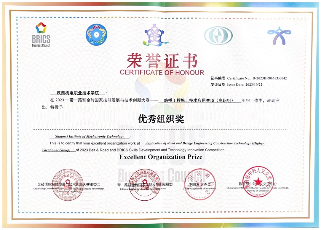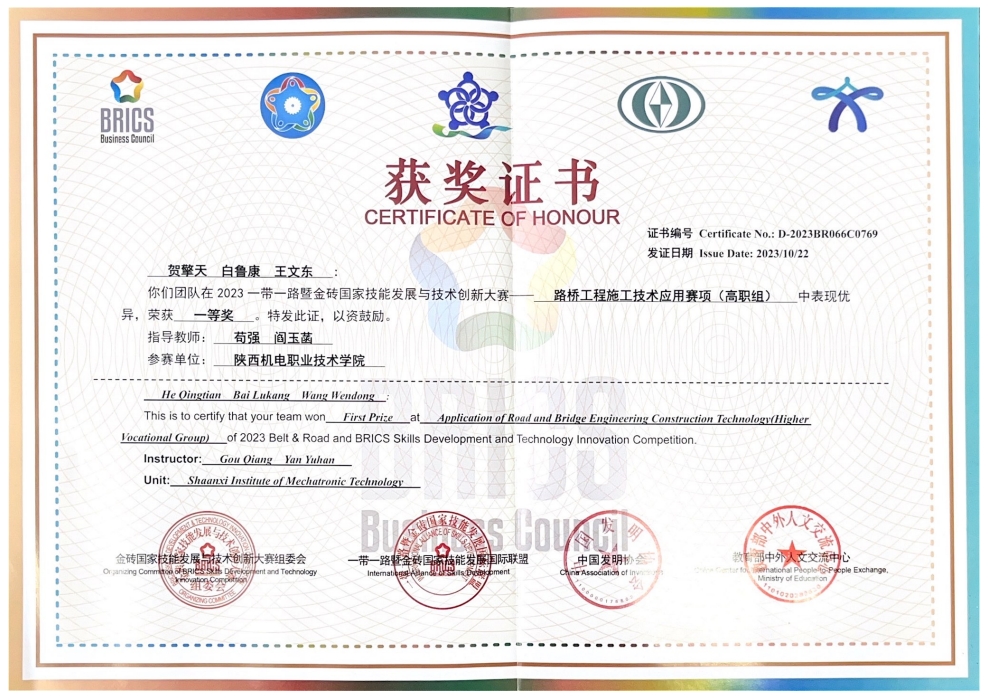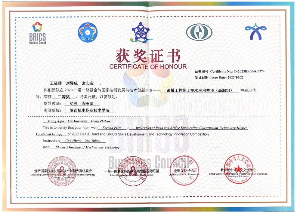 2023第七届一带一路暨金砖国家技能发展与技术创新大赛之路桥工程施工技术应用赛项决赛于2023年10月20日至22日在陕西交通职业技术公司成功举办。