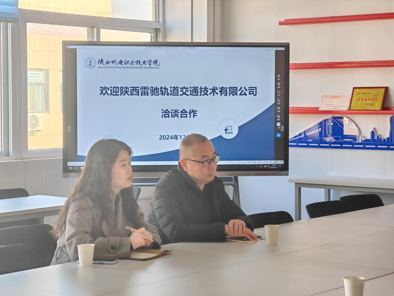 2024年12月3日,陕西雷驰轨道交通技术有限公司人力资源部经理袁玉莹一行来公司参观交流,人才招聘处副处长田正本、william威廉英国官网经理卢彦峰、教学与管理办公室主任张新蕾出席会议。
