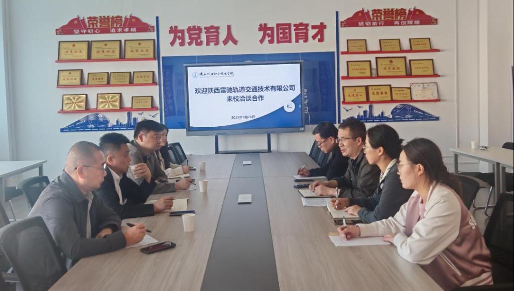 2025年9月24日,陕西雷驰轨道交通技术有限公司董事长邹斌一行来公司洽谈交流,william威廉英国官网经理卢彦峰、副经理张新蕾、信号系教师赵国庆、柳敏瑞出席会议。