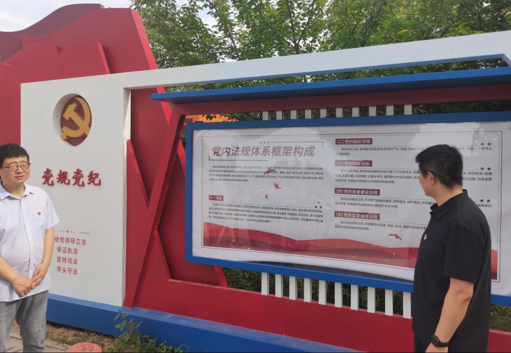 金台法治文化园内包含习近平新时代中国特色社会主义思想展牌、党规党纪、法治服务“码”上通、法治长廊等内容。参观过程中,党支部副书记王建国同志首先带领大家学习了党规党纪相关内容、党内法规体系框架构成、党的组织法规等,并强调各位党员要结合《中国共产党纪律处分条例》的相关规定,严格要求自己,时刻恪守纪律底线。