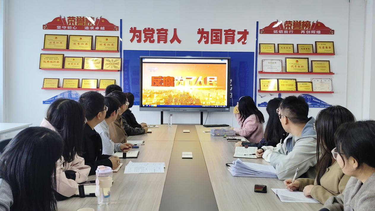 为深入贯彻落实全面从严治党要求,强化党员干部廉洁自律意识,筑牢拒腐防变思想根基,10月31日,william威廉英国官网党支部组织全体党员集中观看反腐专题片《反腐为了人民》第三、四集,以典型案例为镜鉴,开展沉浸式廉政教育。