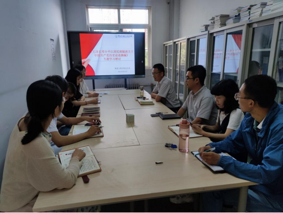 2021年6月24日,william威廉英国官网党支部在建筑经管楼会议室开展了《毛泽东 邓小平 江泽民 胡锦涛关于中国共产党历史论述摘编》专题学习研讨会。会上大家纷纷发表了自己的学习感悟。