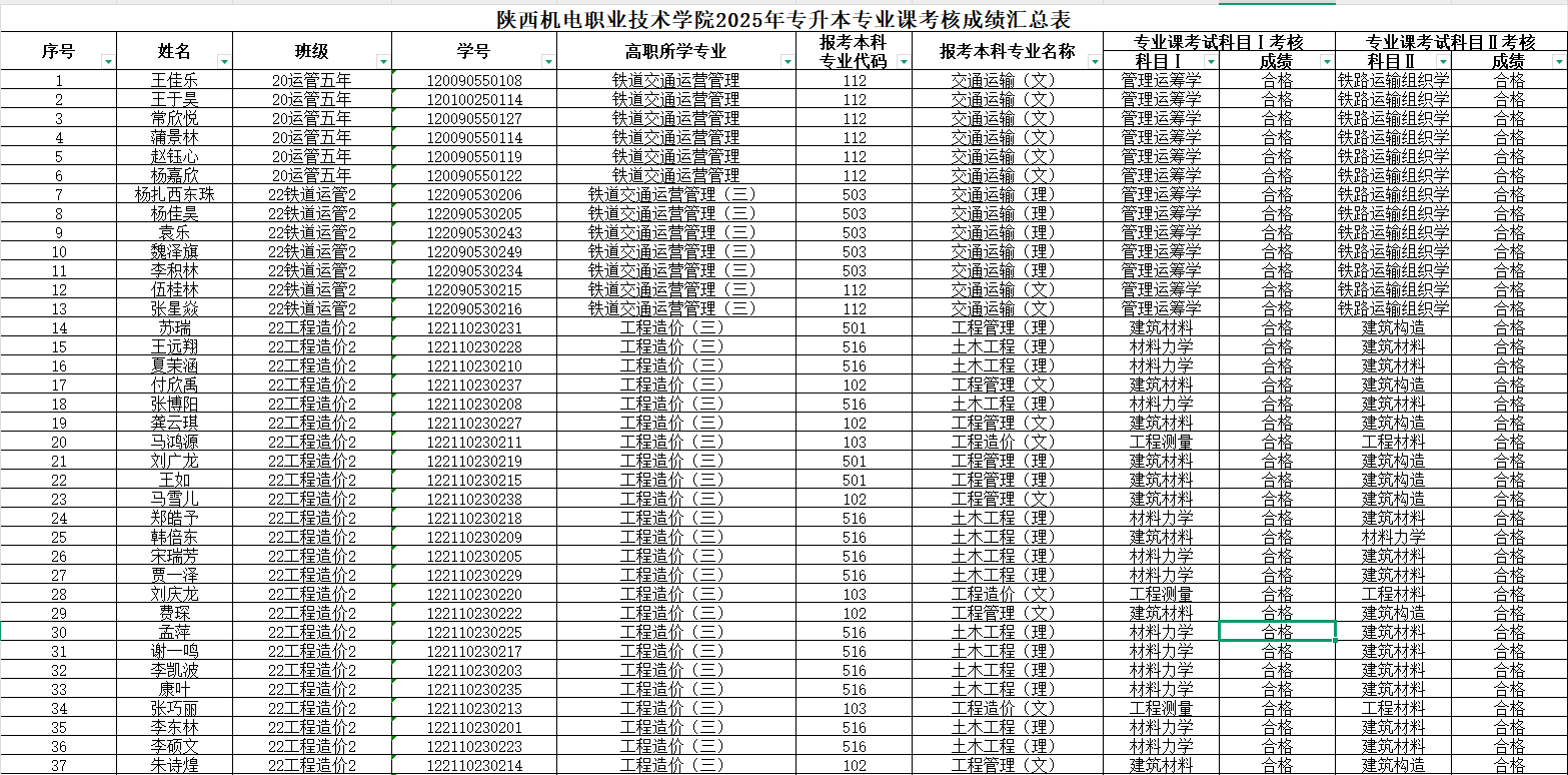 公示内容:2025年专升本专业课考核成绩