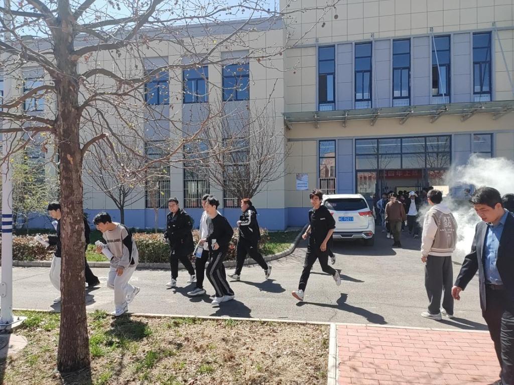 在师生安全撤离至操场后,为了让大家有效、正确地使用器材,保卫处王龙老师现场示范了灭火器的使用方法,师生们对消防器材来了一次“零距离接触”,在动手实践中掌握了灭火方法。
