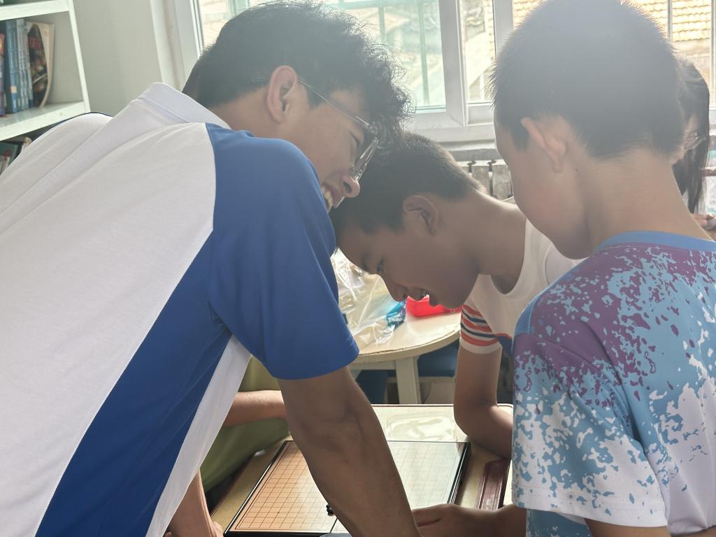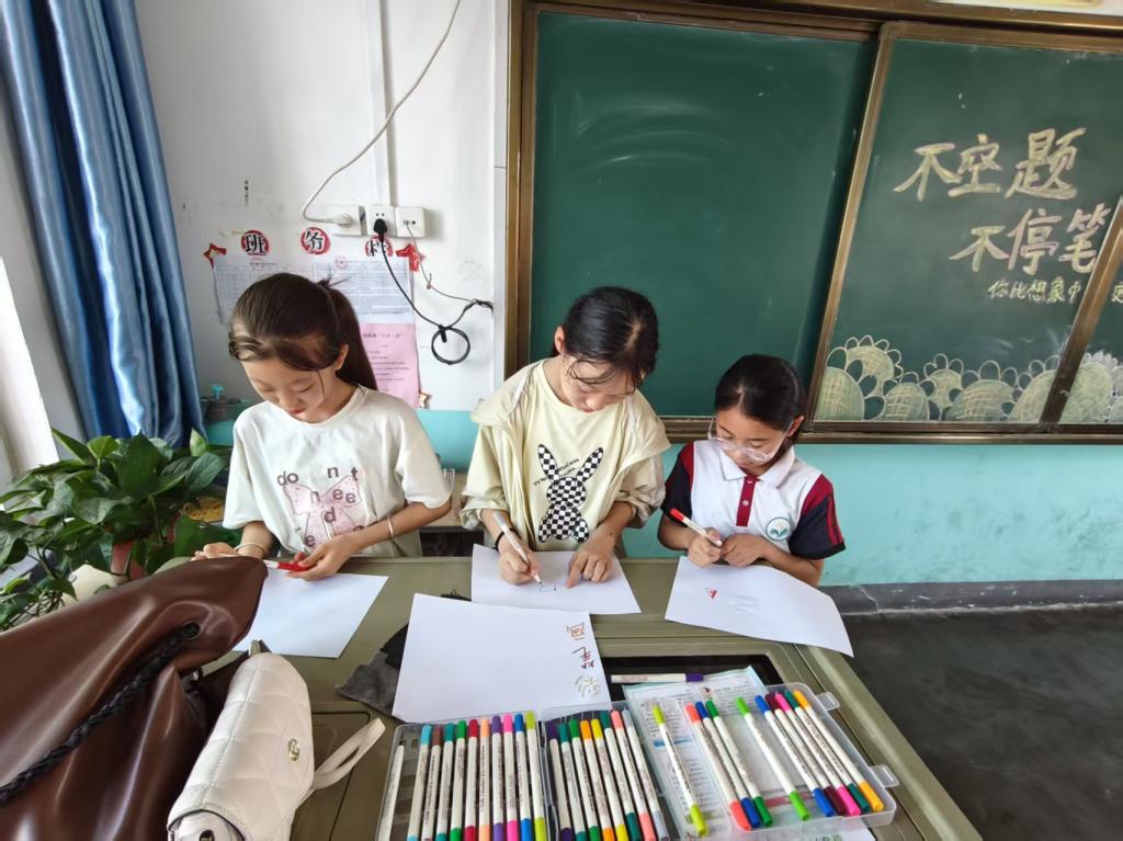 在心理健康游戏互动环节,团队精心准备了釜底抽薪、五子棋、房树人测验等活动。釜底抽薪游戏中,孩子们聚精会神地摆放杯子,在一次次尝试中锻炼了手眼协调能力和耐心;五子棋对弈时,大家沉着思考、谨慎落子,不仅体验了博弈的乐趣,还培养了逻辑思维和策略意识;房树人测验则让孩子们通过画笔描绘出自己心中的世界,队员们通过分析画作,更深入地了解孩子们的内心想法和心理状态,为他们提供个性化的心理支持。孩子们在游戏中积极参与、相互配合,校园里充满了欢声笑语,每一个孩子的脸上都洋溢着纯真的笑容。