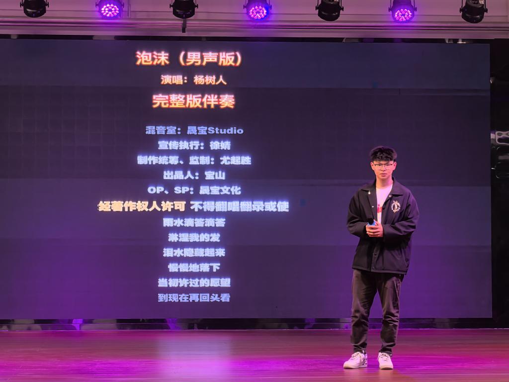 大赛自启动以来,便得到了同学们的积极响应,经过层层选拔,共有10位选手脱颖而出,成功晋级决赛。决赛当天,选手们各展歌喉,风格迥异,或激情澎湃,或深情款款,或高亢激昂,每一首歌曲都被选手们演绎得淋漓尽致。他们用高超的演唱技巧和强大的舞台表现力,展现出了精湛的音乐功底,赢得了评委和观众的一致好评,动人的歌声向在场所有人传递着青春的活力与梦想,赢得了台下观众的阵阵掌声与欢呼。