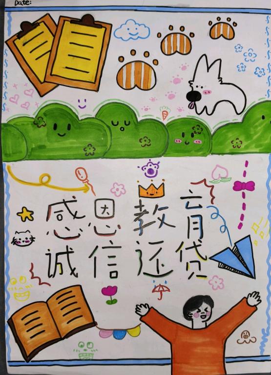 本次活动的作品,同学们凭借巧妙的创意、细腻的笔触和真挚的情感,生动展现出对国家资助的感恩与回馈,通过丰富的色彩、生动的画面和深刻的内涵,将感恩与诚信的正能量传递给每一位观者,这些作品如同温暖的溪流,缓缓流淌出同学们内心深处的感激。