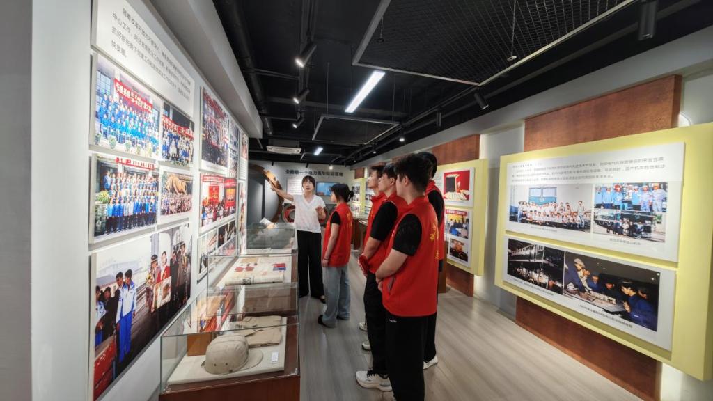 在一组锈迹斑斑的钢钎与开山锤前,实践队员们驻足良久。这些工具的主人是当年参与观音山隧道施工的铁道兵,展牌上的黑白照片里,战士们腰系麻绳悬在峭壁上,用人力开凿坚硬的岩层。“当时没有大型机械,先辈们靠肩扛手刨,在海拔1000多米的秦岭深处打通了304座隧道、架设了1001座桥梁。看着这一张张黑白照片,队员们不禁感叹:“这种不畏艰险、敢为人先的精神太震撼了!”