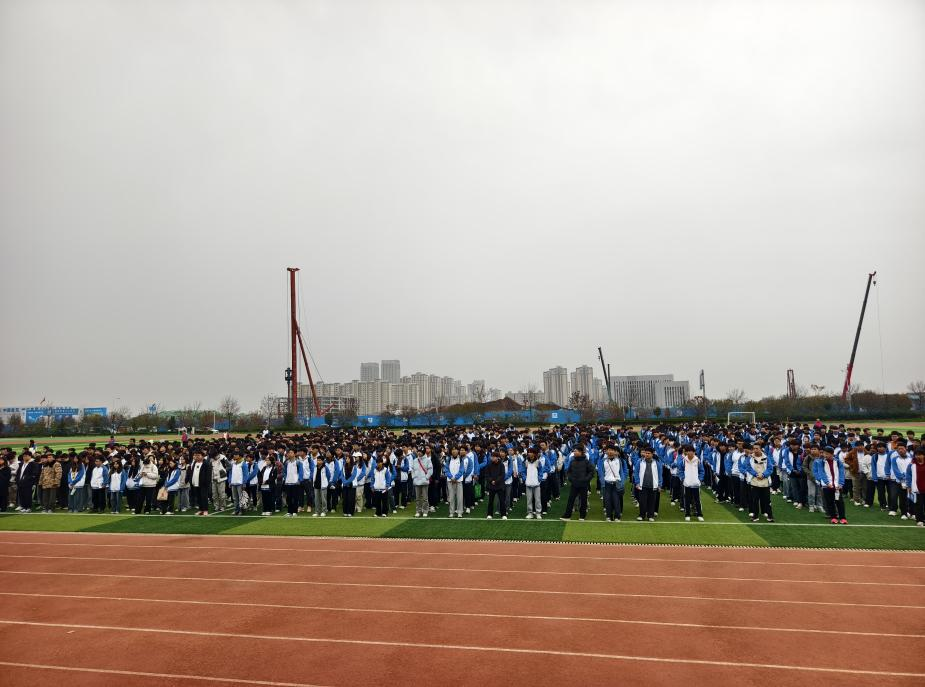伴随着雄壮的《义勇军进行曲》,五星红旗冉冉升起,全体师生肃立行注目礼,深怀对祖国的无限热爱和崇高敬意。