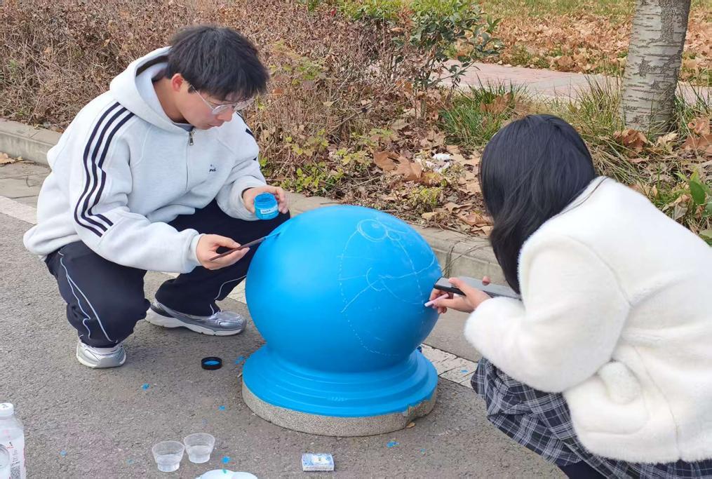 活动中,志愿者们以石墩为画卷,执笔绘彩、持刀刻画,将创意与热情倾注于一方方墩体之上。一幅幅生动活泼、色彩明快的图案陆续呈现,为校园环境增添了艺术气息与青春活力。课后途经的同学们纷纷驻足欣赏、拍照分享,在互动中感受到艺术带来的愉悦与感染力,实现了“美育赋能”与“情感共鸣”的双重效果。