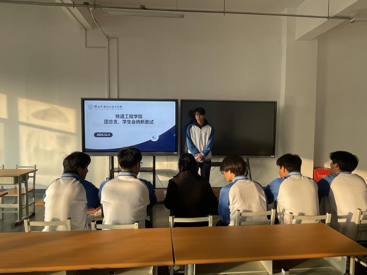 接着,团总支、员工会工作人员指导各位新生有序进行面试。参加面试的同学们充分准备,以积极热情的态度依次上台发言。面试现场气氛热烈,秩序井然。