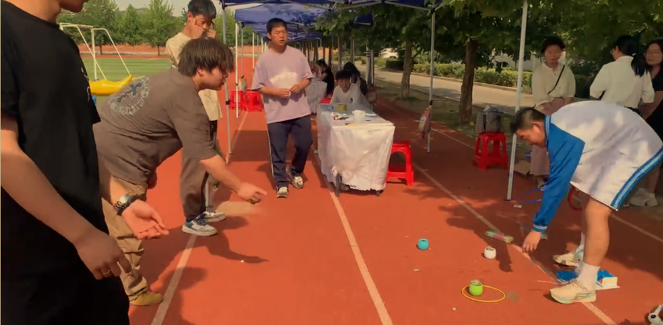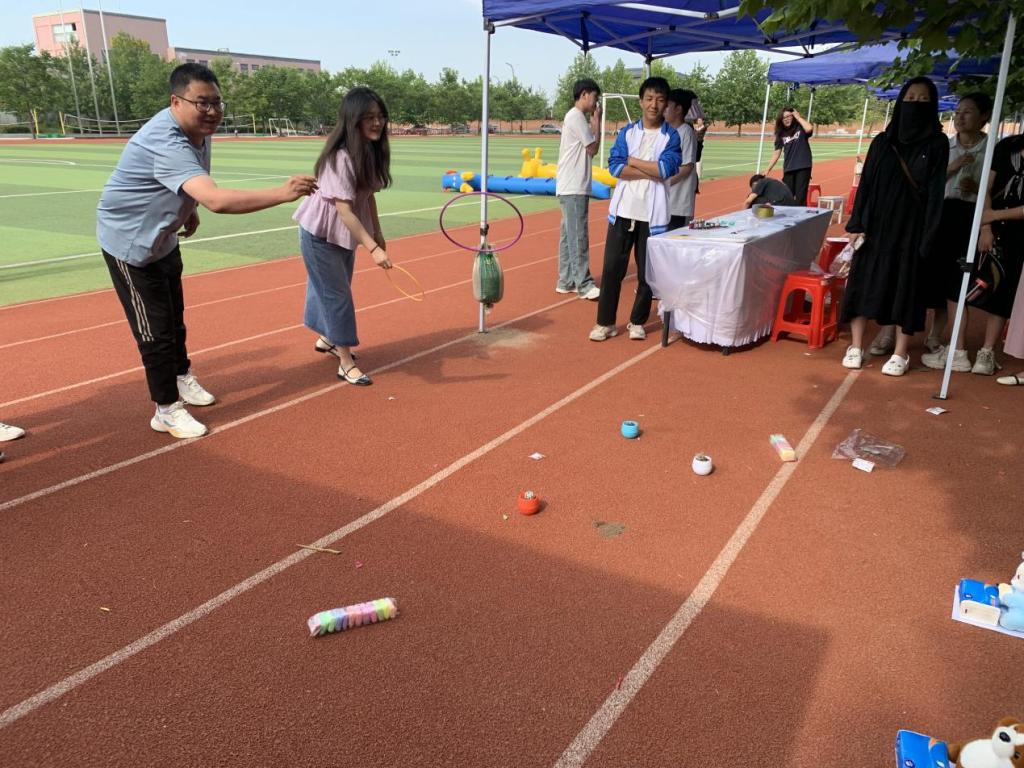 活动中,师生们在起点领取集章卡,按照路线游玩体验,完成小游戏盖章打卡,获得一定数量的印章即可兑换套圈完成终极挑战。