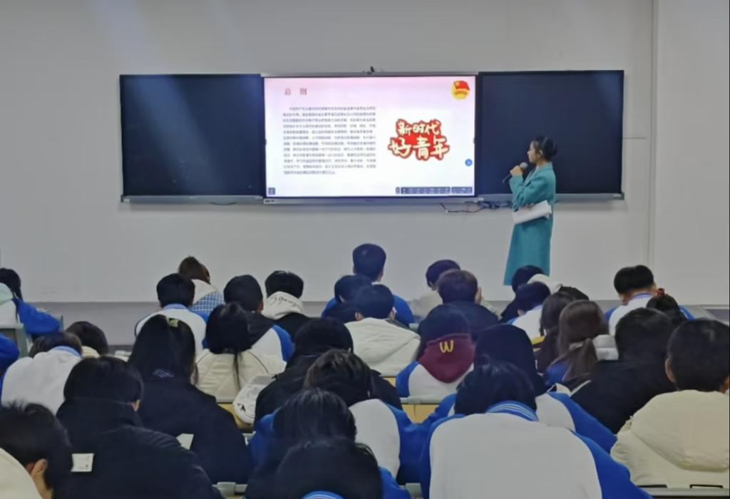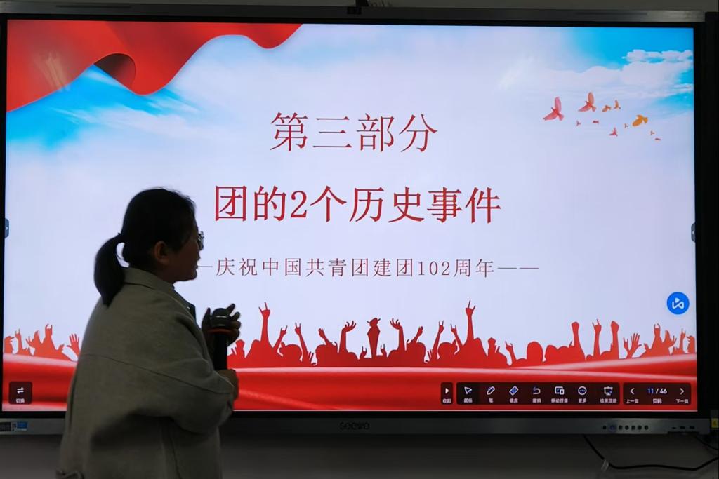 历史照亮未来,征程未有穷期。第三讲《学习百年团史,争做新时代团员》谢孝乐老师带领大家学习了“团的两个历史事件”,讲解了共青团的历史发展脉络,随后,谢立足日常生活实际,结合相关案例,号召广大团员青年要弘扬“五四”精神,在生活中积极学习历史事迹,坚守理想信念,不忘初心,在学习上扎实理论知识,强化专业素养,奋勇建功,以自强不息的进取精神打造和锤炼自己,争做新时代的合格团员!