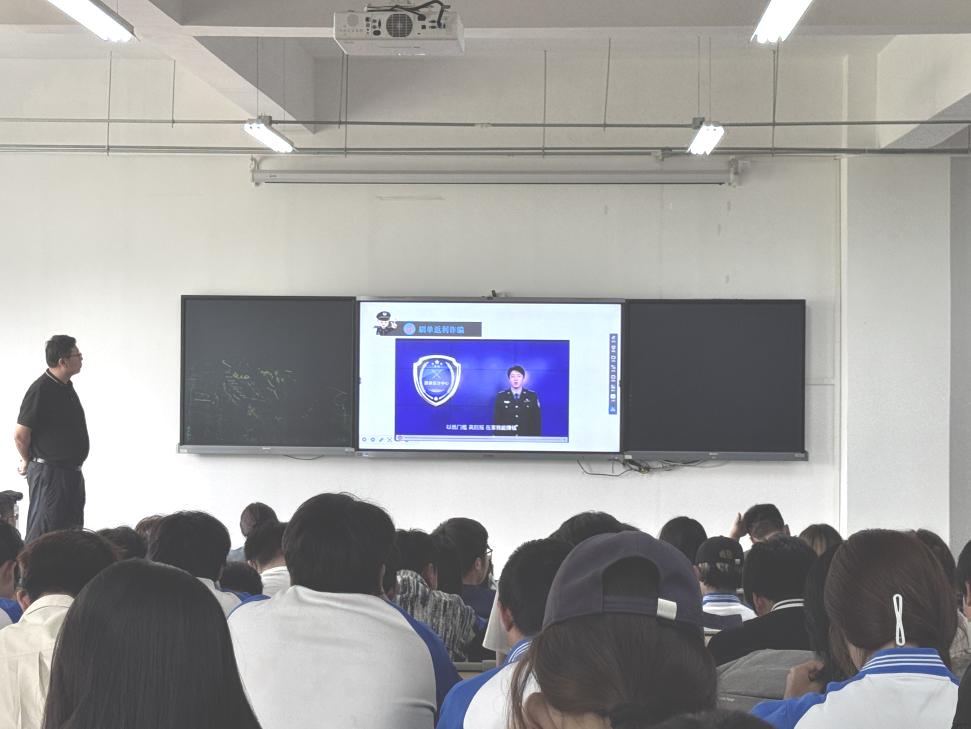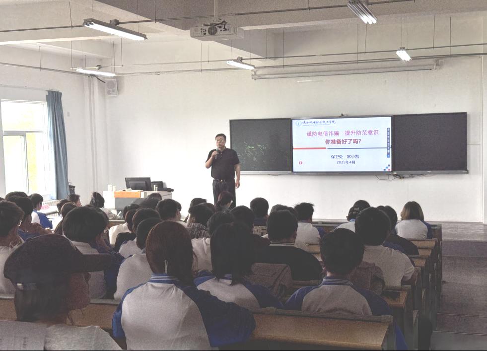 讲座上,常小凯以《谨防电信诈骗,提升防范意识》为题,结合当前社会电信诈骗的常见形式,如网络刷单、冒充公检法、虚假投资等,深入剖析了针对老员工的诈骗套路,并重点解读了“两卡违法犯罪”(银行卡、电话卡)的危害及防范要点。他通过展示真实诈骗案例、播放警示视频,以幽默风趣的语言将防诈技巧融入讲解,赢得了现场师生的阵阵掌声。