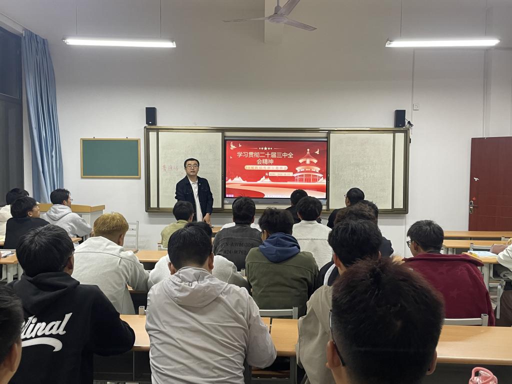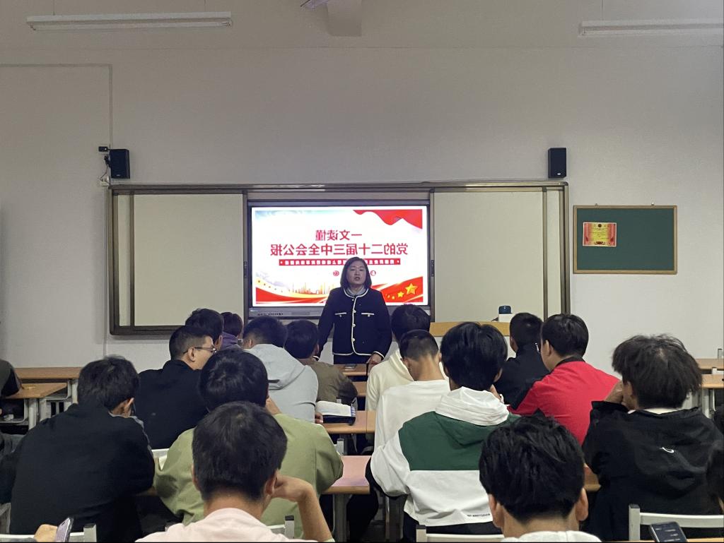 班会中,班主任/辅导员老师郑重地向同学们传达了党的二十届三中全会的重要精神。向同学们介绍,党的二十届三中全会是在新的历史起点上推进全面深化改革向广度和深度进军的又一次总动员、总部署,全会审议通过的《中共中央关于进一步全面深化改革、推进中国式现代化的决定》,紧紧围绕推进中国式现代化这个主题,进一步明确了全面深化改革的战略举措,充分体现了以习近平同志为核心的党中央完善和发展中国特色社会主义制度、推进国家治理体系和治理能力现代化的历史主动和将改革进行到底的勇气决心。