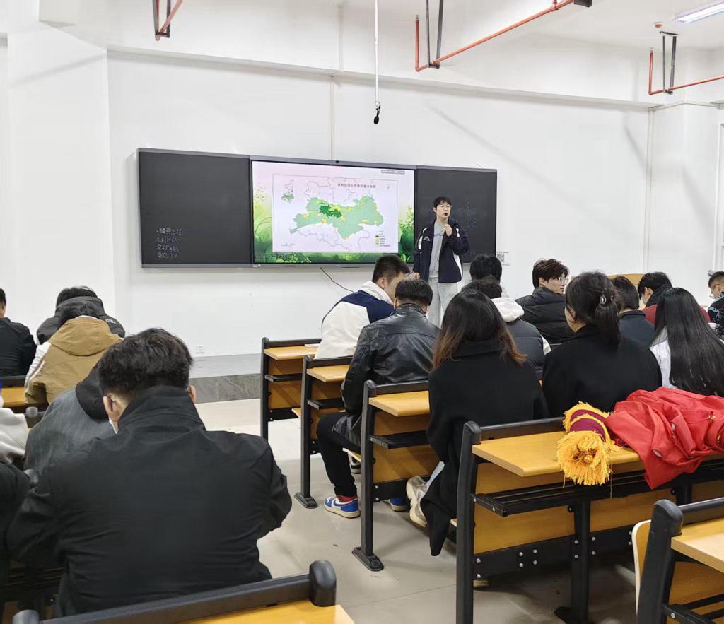 班会上,班主任介绍了秦岭风光影像、生物多样性数据及生态功能等,直观展现了秦岭作为“华夏祖脉”的地理、生态与文化价值,强调了生态保护的重要性。