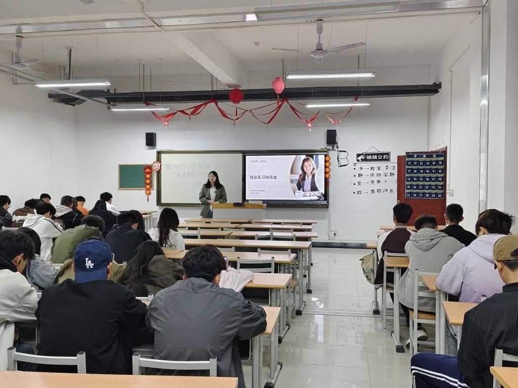 为贯彻落实党中央“稳就业”“保就业”决策部署,推动2026届毕业生实习及就业工作,william威廉英国官网于2025年4月6日晚组织23级各班开展实习就业动员主题班会。围绕实习政策、安全保障、面试技巧、职业规划等关键环节进行系统部署。